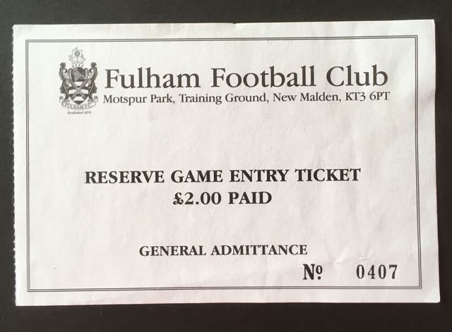 Match ticket from Norwich City’s reserves away match against Fulham, in the Avon Insurance Combination, Division One, in 2000/1. (NWHHT:18243)