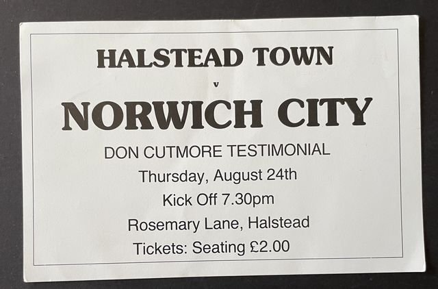 Match ticket for Norwich City’s reserves away match against Halstead Town, in testimonial for Don Cutmore, in 1989/90. (NWHHT:21629)