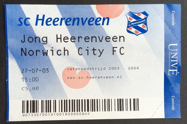 Match ticket from Norwich City’s away match against SC Heerenveen, in a friendly, in 2003/4. (NWHHT:20974)