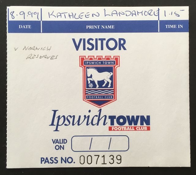Match ticket from Norwich City’s reserves away match against Ipswich Town, in the Avon Insurance Combination, in 1999/00. (NWHHT:20373)