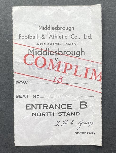 Match ticket from Norwich City’s away match against Middlesbrough in the Football League, Division Two in 1968/9. (NWHHT:25792)