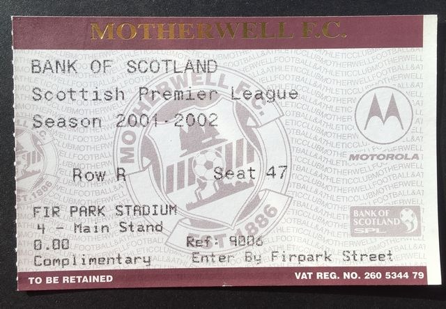 Match ticket from Norwich City’s away match against Motherwell, in a friendly, in 2001/2. (NWHHT:18196)
