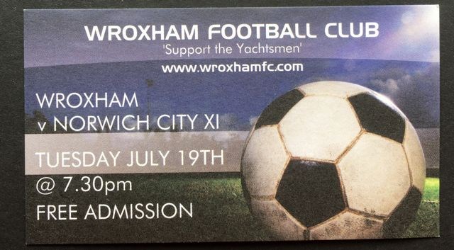 Match ticket, variation, from Norwich City’s reserves away match against Wroxham, in a friendly, in 2011/12. (NWHHT:17183)