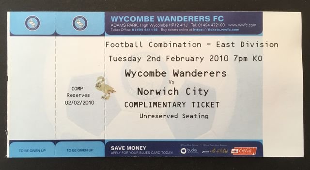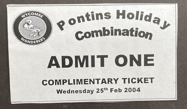Match ticket from Norwich City’s reserves away match against Wycombe Wanderers, in the Pontin’s Holidays Combination, Central & East Division, in 2003/4. (NWHHT:27265)