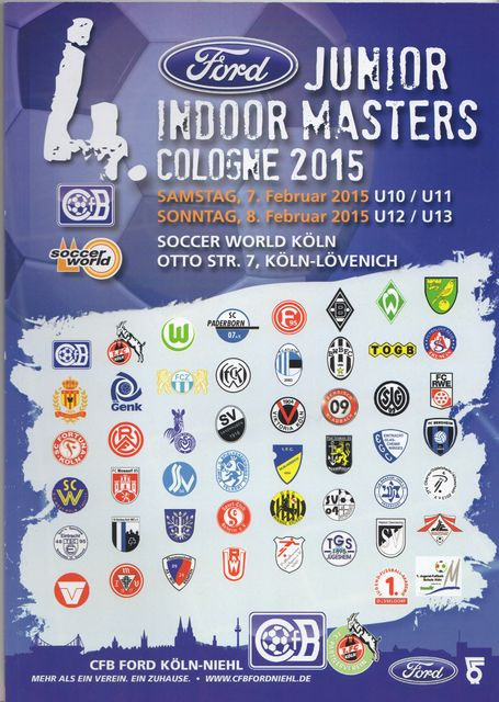 Match programme from the 4th Ford Junior Indoor Masters youth tournament, played in Cologne, Germany, in which Norwich City under 10’s,12’s and 13’s competed, in 2014/15. (NWHHT:9135)