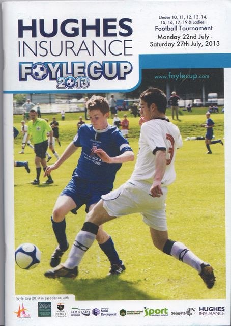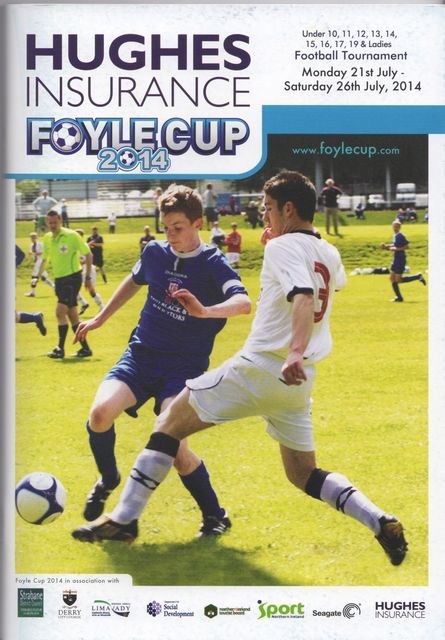 Match programme from the Hughes Insurance Foyle Cup 2013 youth tournament, played in various locations in Northern Ireland, in which Norwich City under 15’s competed, in 2013/14. (NWHHT:8834)