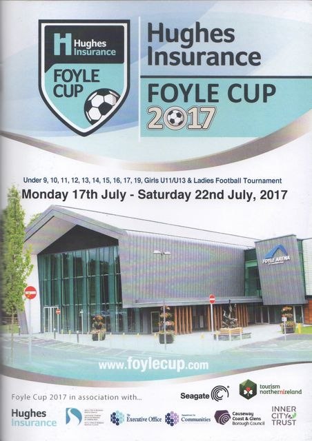 Match programme from the Hughes Insurance Foyle Cup 2017 youth tournament, played in various locations in Northern Ireland, in which Norwich City under 15’s and 18’s competed, in 2017/18. (NWHHT:9754)