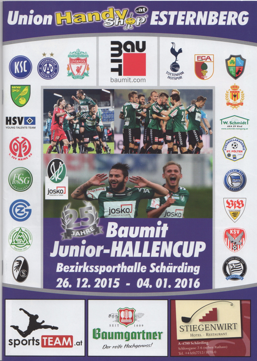 Match programme from the Baumit Junior Hallencup youth tournament, played in Scharding, Austria, in which Norwich City under 15’s competed, in 2015/16. (NWHHT:9362)