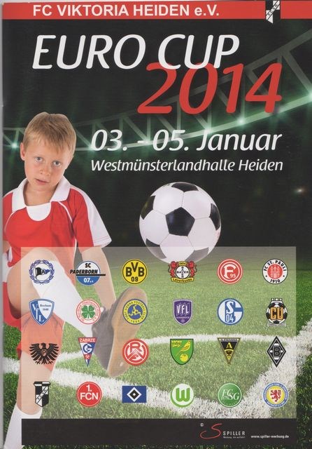 Match programme from the Euro Cup 2014 youth tournament, hosted by Viktoria Heiden 1921, played in Germany, in which Norwich City under 13’s competed, in 2013/14. (NWHHT:8832)