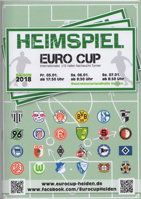 Match programme from the Euro Cup 2018 youth tournament, hosted by Viktoria Heiden 1921, played in Germany, in which Norwich City under 12’s competed, in 2017/18. (NWHHT:9755)