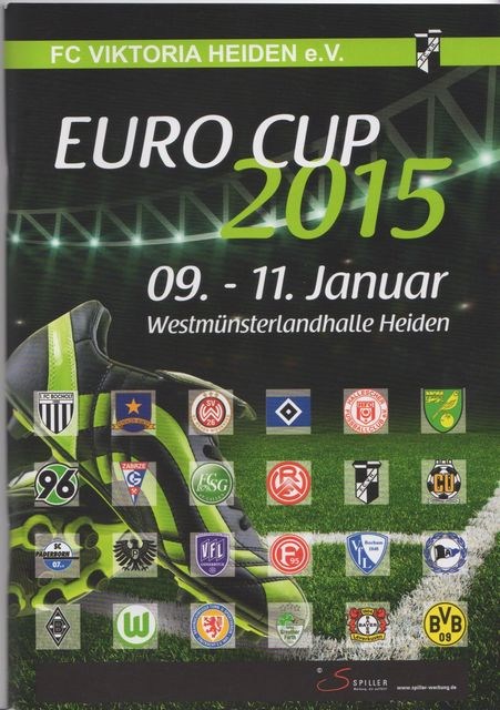 Match programme from the Euro Cup 2015 youth tournament, hosted by Viktoria Heiden 1921, played in Germany, in which Norwich City under 13’s competed, in 2014/15. (NWHHT:9121)