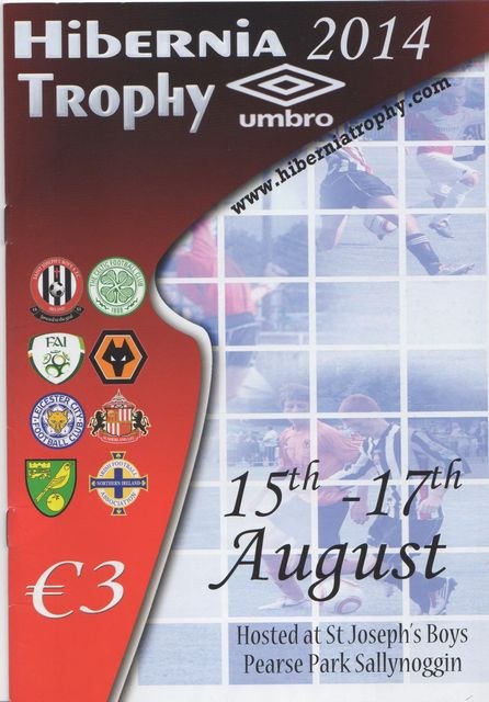 Match programme from the Hibernia Trophy 2014 youth tournament, hosted by St Joseph’s Boys, in the Republic of Ireland, in which Norwich City under 14’s competed, in 2014/15. (NWHHT:9123)