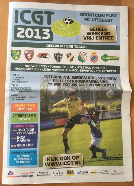 Match programme from the International Cor Groenewegen youth tournament, played in Uitgeest, Netherlands, in which Norwich City under 21’s competed, in 2012/13. (NWHHT:8652)