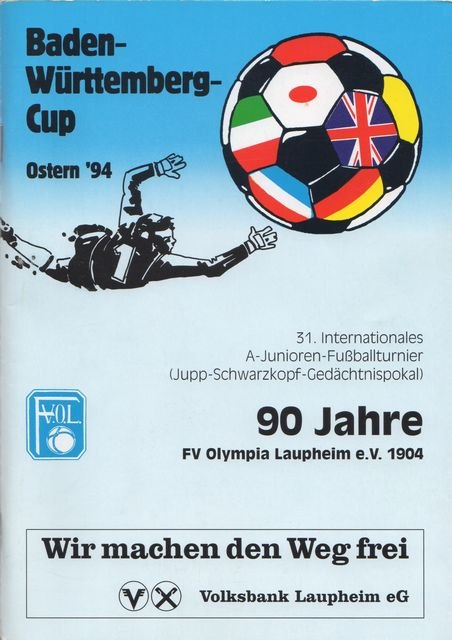 Match programme from the 31st Baden-Wurttenmburg Youth Cup tournament in Laupheim, Germany, in which Norwich City Juniors competed, in 1993/4. (NWHHT:5006)