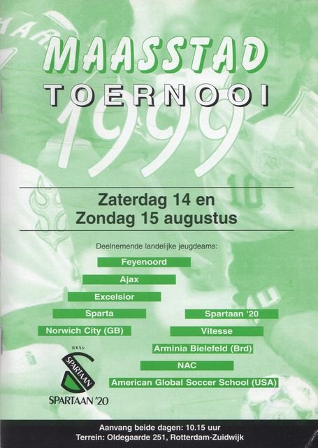 Match programme from the 40th Maasstad tournament 1999, hosted by Spartaan 20, Netherlands, in which Norwich City youth competed, in 1999/00. (NWHHT:5994)