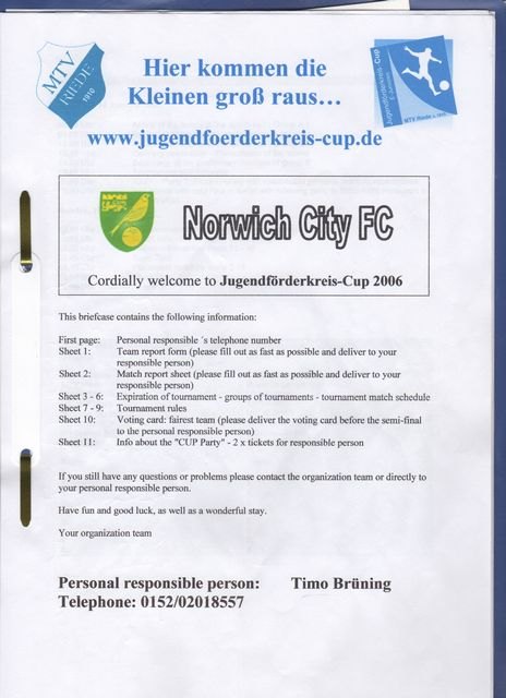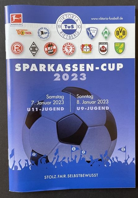 Match programme , from the 2023 Sparkassen Cup youth tournament, played in Reitburg, Germany in which Norwich City under 11’s competed, in 2022/3. (NWHHT:23732)